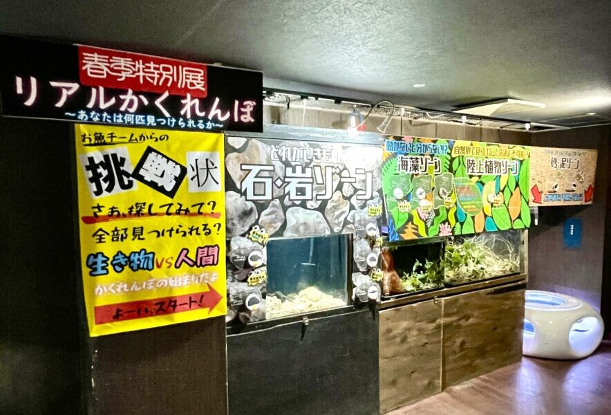来館者は、ただ眺めるだけでなく「どこに隠れているのか」を意識して水槽をのぞき込むことで、まるでかくれんぼに参加しているかのような感覚で展示を楽しめます。