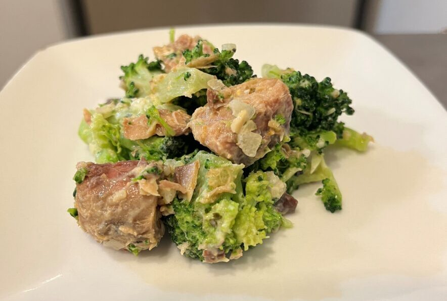 サバとブロッコリーをタルタルソースであえてサラダに。タルタルソースによって魚特有の臭みが気にならなくなり、ブロッコリーと合わせることで食感も楽しい一品です。