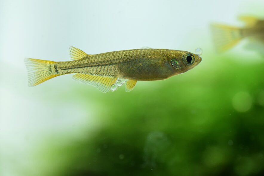 メダカとの見分け方でわかりやすいポイントのひとつは、尾びれの形メダカは尾びれが角ばっていて四角に近い形なのに対し、カダヤシは丸みがあります。