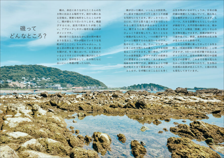 チャプター1では「磯ってどんなところ?」から始まり、磯の基本情報から生き物に出会うコツなどを収録。夏休みの自由研究に使える観察のヒントやアイデアが網羅的に納めされています。