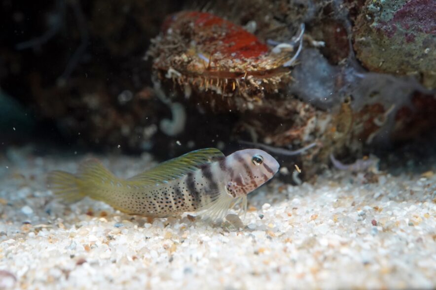 実際に飼育していた際、目の周りが白く、くりくりした目が可愛く感じました。そんな目で周囲を見たり、砂や岩の上などに腹鰭を使ってちょこんと立たずんでいる姿もたまりません。