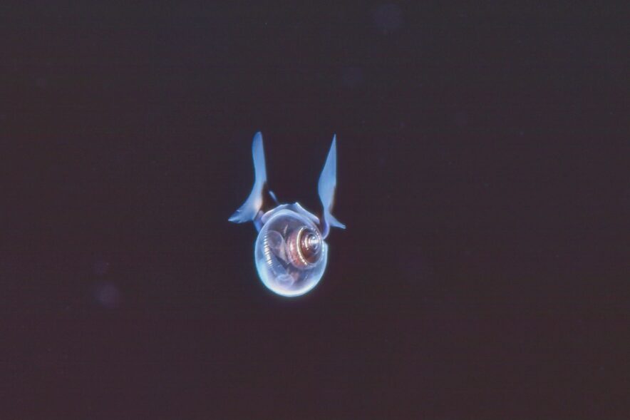 翼足類(提供:PhotoAC)また、透明な殻を持つ有殻翼足類は、酸性化や水温上昇の影響を受けやすいことから、個体数現象や分布の変化を通じて、将来の南極海における食物網に影響を及ぼす可能性が指摘されてきました。