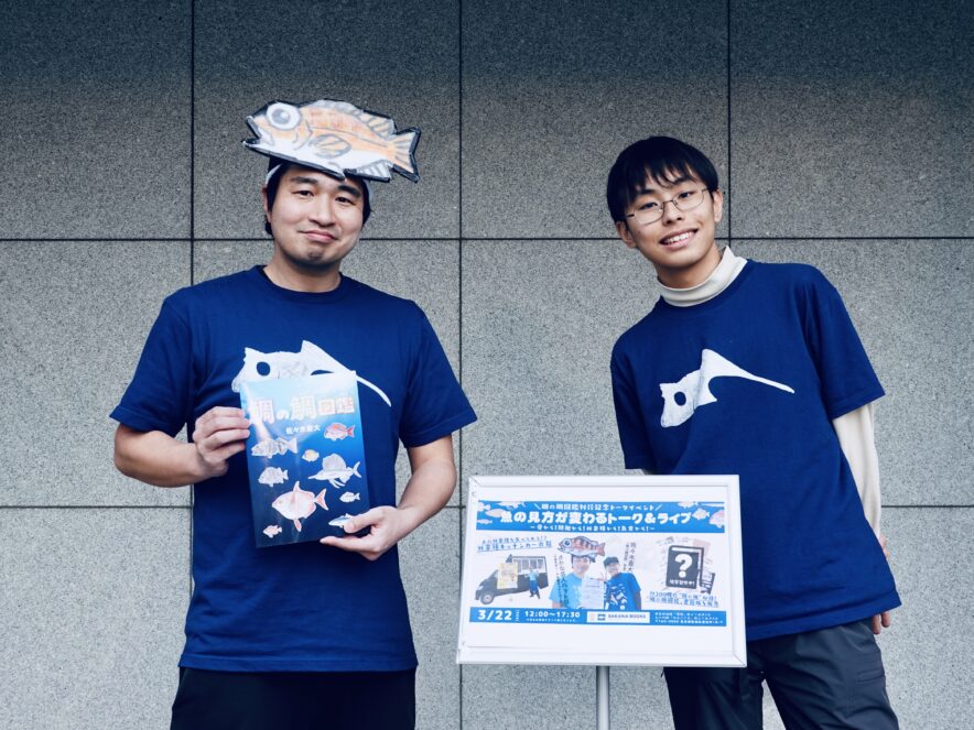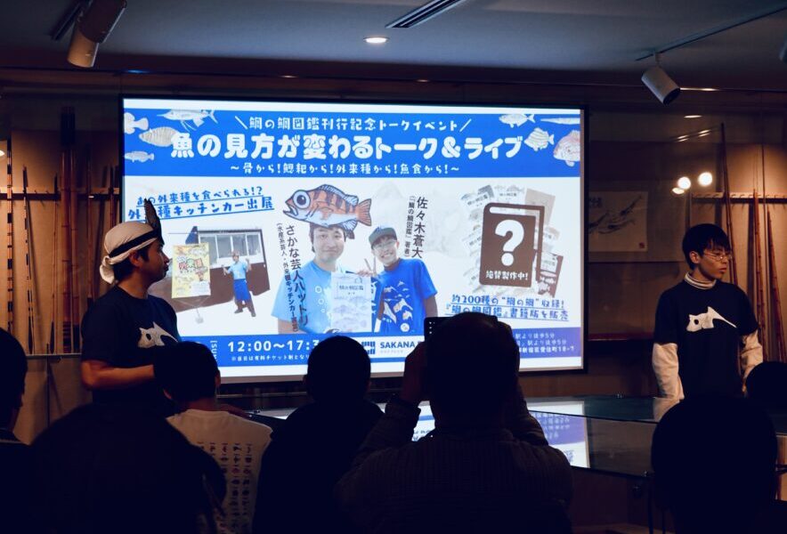 イベントには蒼大さんと水産系ピン芸人・さかな芸人ハットリさんが参加。二人によるトークショーのほか、鯛の鯛標本の特別展示、ハットリさんが運営する外来種の生きものを使ったメニューを提供するキッチンカーの出店などが行われました。