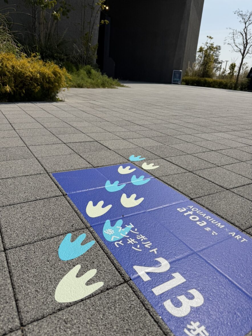 実際に飼育員が計測した足のサイズをもとに歩幅を算出し、模様やフォルムにもこだわりを反映させることで、ペンギンの生態的な特徴も楽しく伝えながら距離感を示す仕掛けになっています。
