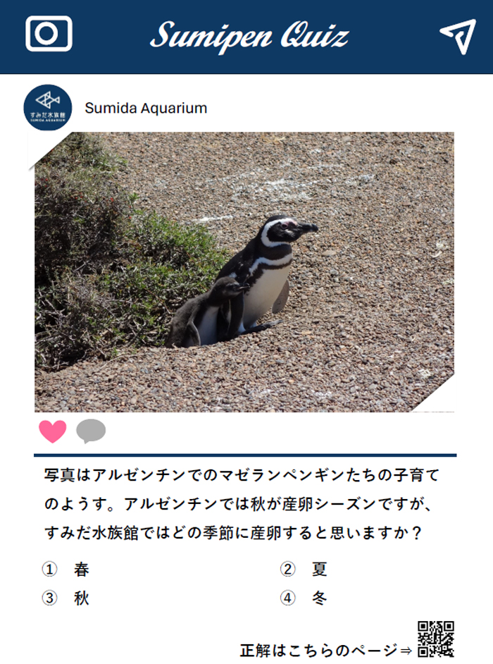 館内では、飼育スタッフがアルゼンチンで撮影した写真をクイズ付きのSNS風パネルにして展示する写真展が行われ、ペンギンの生態クイズを通じて野生のマゼランペンギンについて楽しく学べます。