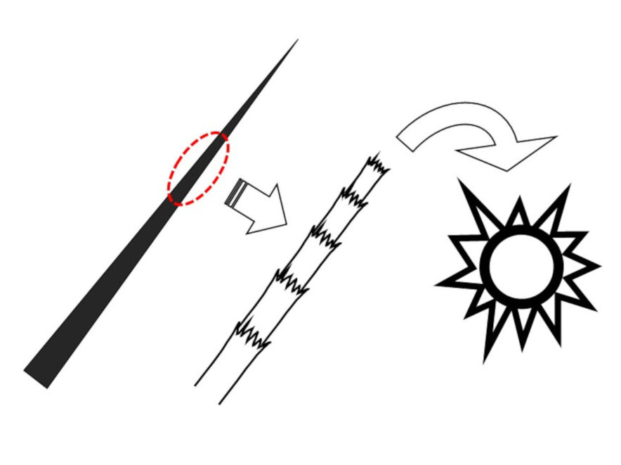 ガンガゼの棘は節状で中空になっている(作図:額田善之)この長く鋭い針はマリンシューズやウエットスーツを貫通することもあります。また、針の先端には毒腺があり、棘の節には細かな返しがあるため、体内に残りやすく危険です。