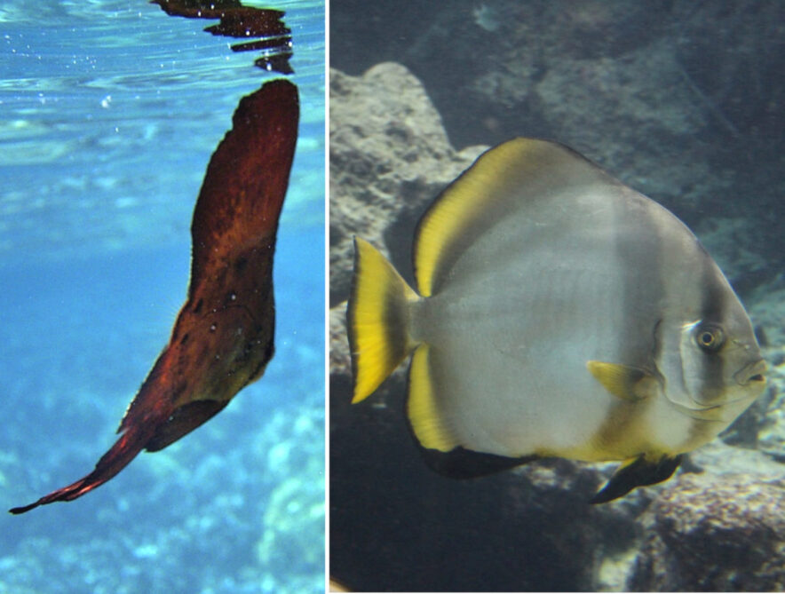成魚とは全然違う!<ナンヨウツバメウオ>の幼魚はまるで枯れ葉?